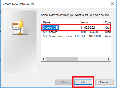 Step 8After clicking the Add button, it takes you into another window where you have to select the Oracle in XE service. The below picture will help you to understand. After selecting the desired name, click on Finish.