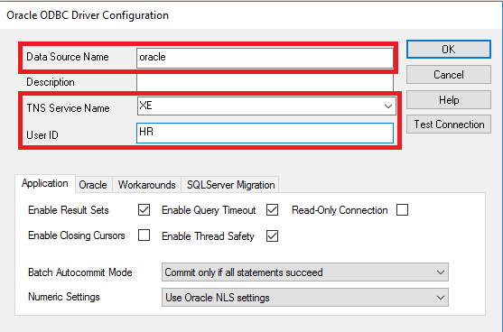 The fields to be filled are displayed in the below-given picture. Here, User ID is specifically given as HR and this is only for sample purpose since the HR user is already available in Oracle and I am going to use it along with its data.