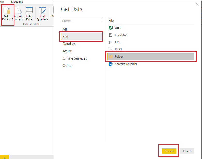 Click on Get Data > File > Folder. Then, click "Connect".