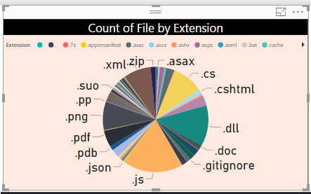Now, I want to represent the file count by extension in a graphical form with a pie chart. So, I will add a Pie chart and add the following columns.