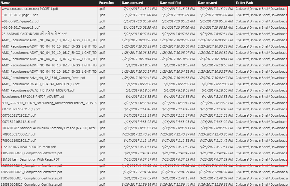 My data is filtered based on the .pdf extension.