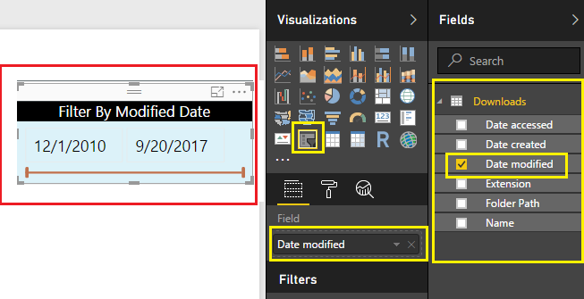 Secondly, let’s add a slicer visual to filter the data based on the date modified.