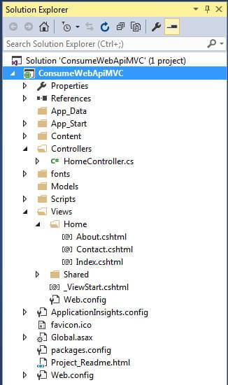 Create a new ASP.NET MVC Web Application project called “ConsumeWebApiMVC”.