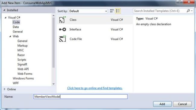 Now, create a ViewModel called MemberViewModel inside the Models folder.