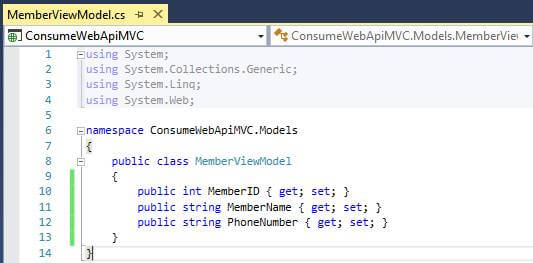 After adding the NuGet package, now, let us code for consuming the Web API and calling the get method of all members' records.
