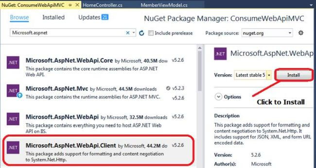 Now, add Microsoft.AspNet.webApi.Client from the NuGet library.
