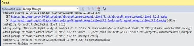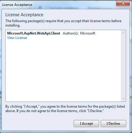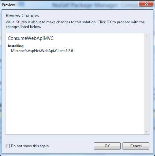 Click OK as in the above dialog box to install Microsoft.AspNetWebApi.Client.