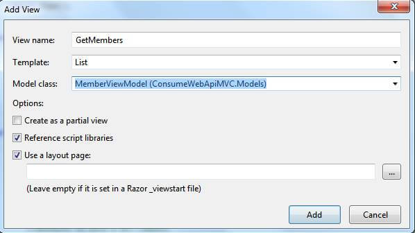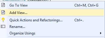 Now, add a View for GetMembers. Right-click on GetMembers Action Method.