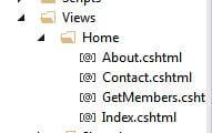 Now, you can see GetMembers.cshtml file created inside VIEWS --> HOME folder.