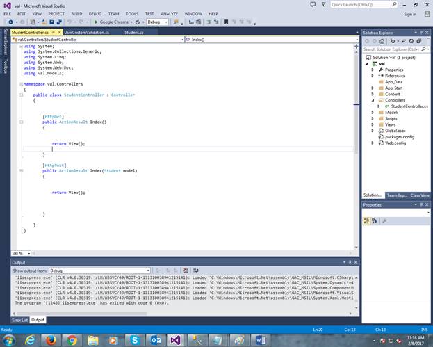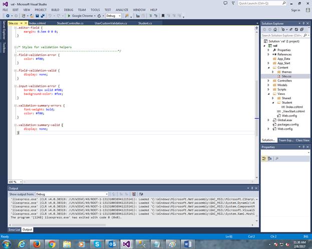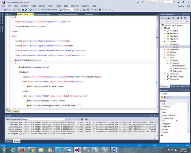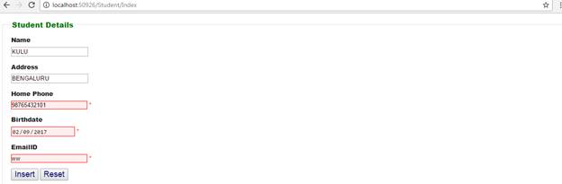 Now, we need to check for the valid data and the  satisfied condition in Student.cs file. Hence, no validation message appears.