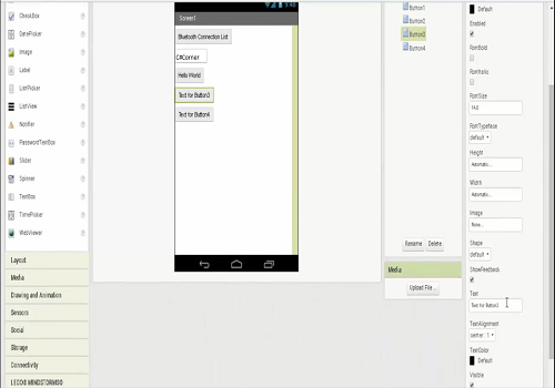 - In the MIT App Inverter we can set the 4 button and Save the program.