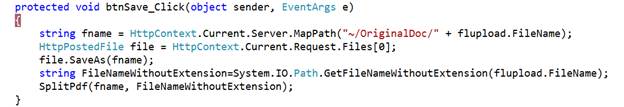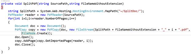 And, in that same method, I am calling another method named as SplitPdf which has two parameters, SourcePath and filenamewithoutExtension.