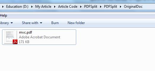 In the SplitPdf method, I created an object of PdfReader which will read the document from SourcePath. In for loop, I am creating the individual PDF by using Document and PdfCopy and storing those new pdf files into SplitDoc folder.