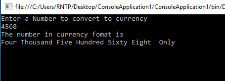 At last, we will get an output as “Four Thousand Five Hundred Sixty Eight”.