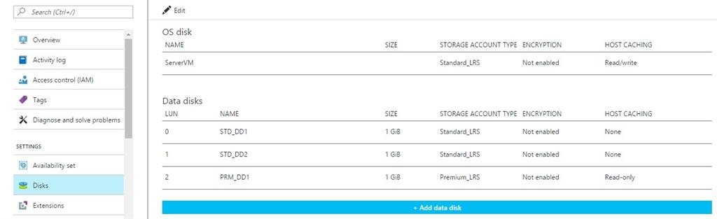In this scenario, we have previously created ARM VM which has an OS disk and three data disks attached (1GB each), out of which two are standard HDD disks and one is premium (SSD) disk stored in premium storage account. Also, note that this article demonstrates the conversion of the VM which is not part of any availability set.