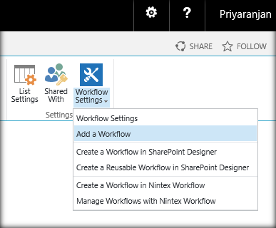 Let’s go ahead to the primary list, where we will be running our Nintex Workflow. In our case, it is the ‘Master’ List. Select ‘Create a Workflow in Nintex Workflow’.