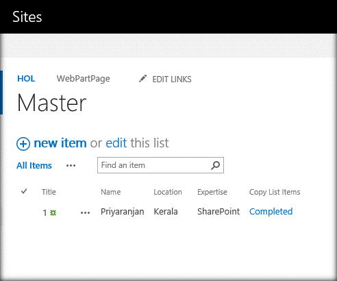 Now, let’s head over to the Master List and create an Item. Once the item is created, go to the Workflow settings page, where you can find the ‘Copy List Items’ Workflow.