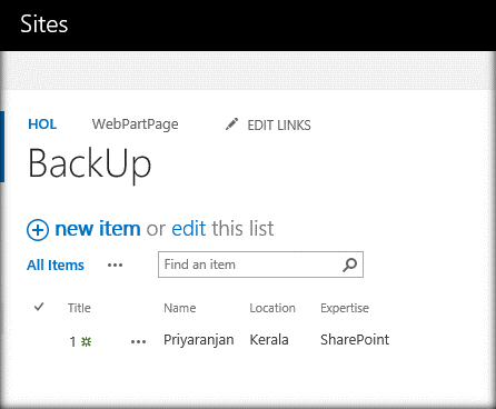 Going to the backup list, we can see the item has been copied to the backup list from Master list.