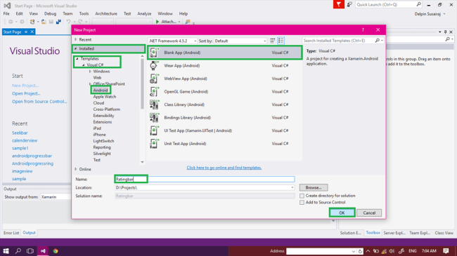 The following steps are needed to be followed, in order to create a Rating Bar Control in Xamarin Android app.