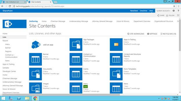 Open the Authoring Site Collection.