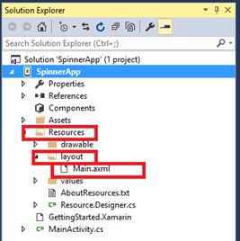 - Spinner spinner = FindViewById<Spinner>(Resource.Id.spinner1);