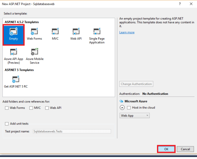 Here, we can select the Empty Application and afterwards, you can click OK button