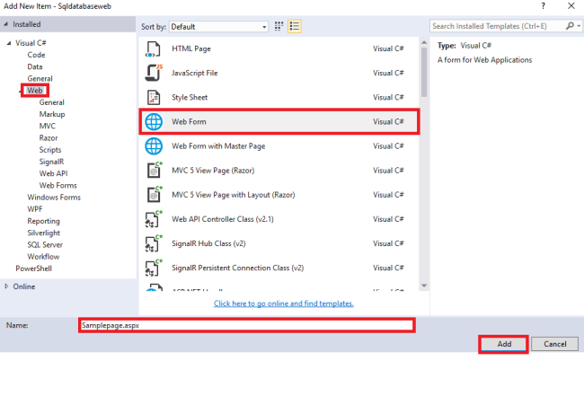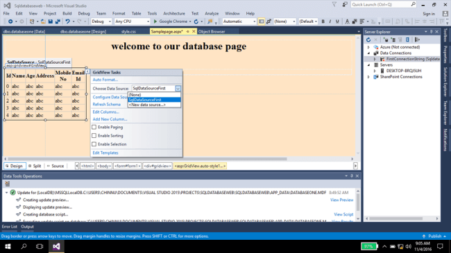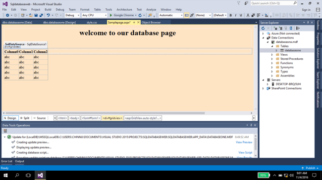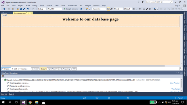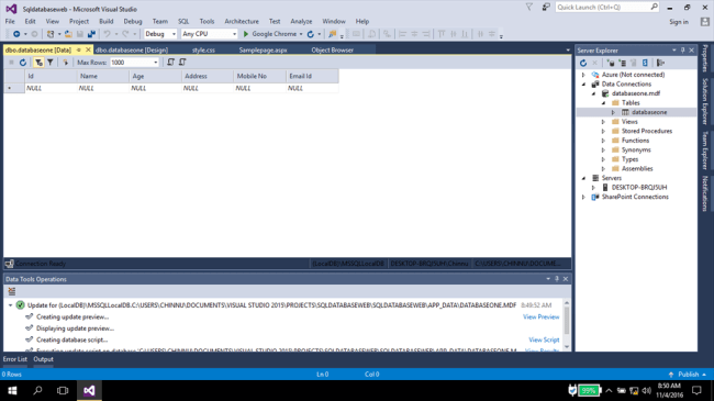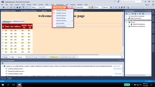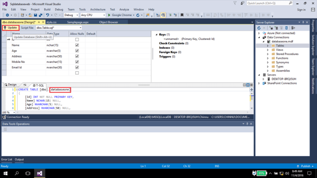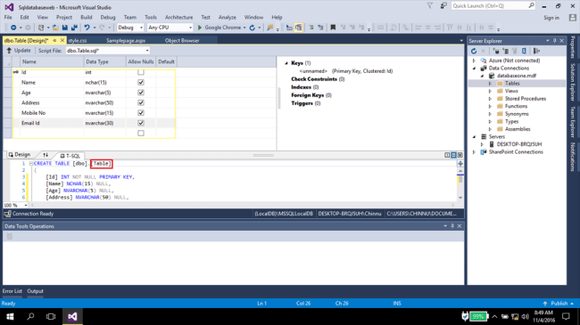 In this article, you will learn how to create SQL database Server in ASP.NET Web form, using Visual Studio 2015 Update 3.