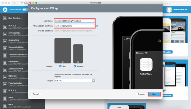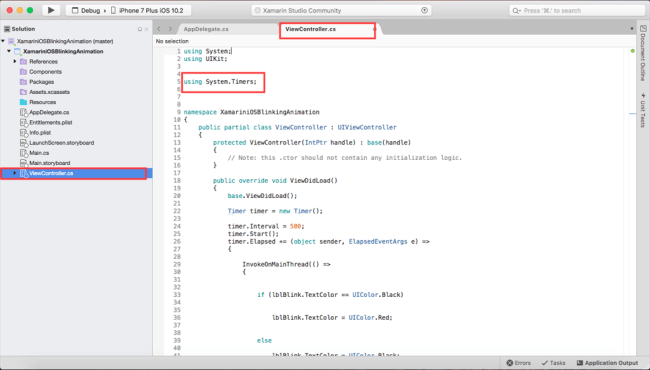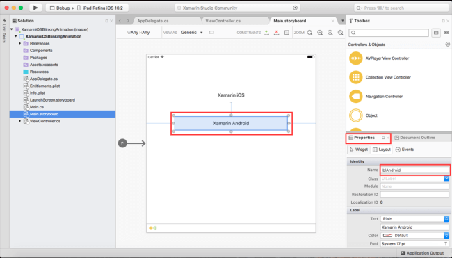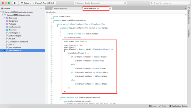 The steps given below are required to be followed in order to create a text blinking animation in Xamarin iOS, using Xamarin Studio.
