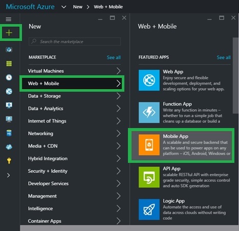 Step 2: In the Jumpbar, click New, then click Web + Mobile, and then Mobile App.