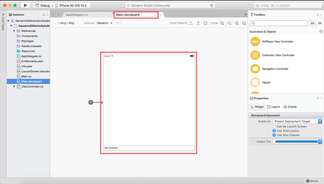 The steps given below are required to be followed in order to create an Activity Indicator in Xamarin iOS, using Xamarin Studio.