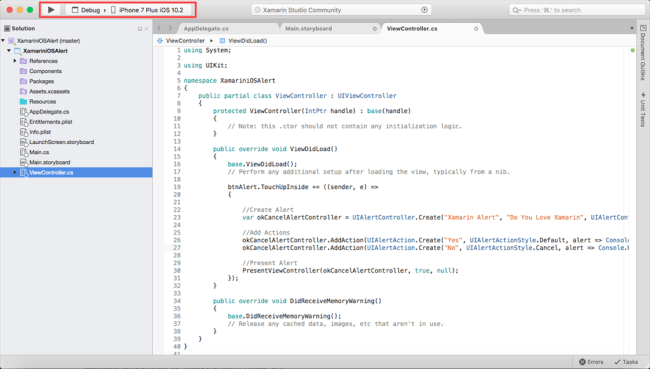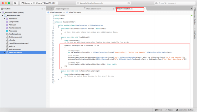 This was the process of creating an Alert dialog in Xamarin iOS application, using Xamarin Studio.