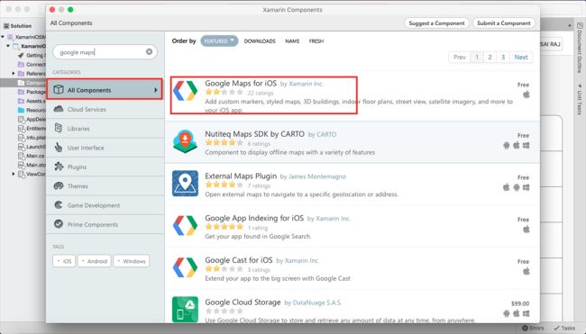 Now, select All Components. search Google Map after each complete. Choose the Google Maps for iOS.