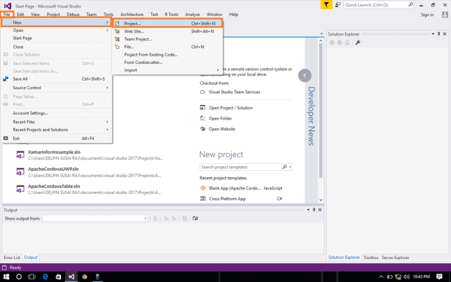 Click File--> select New--> select Project. The project needs to be clicked after opening all the types of the projects in Visual Studio or click (Ctrl+Shift+N).