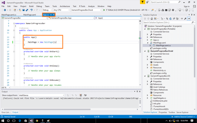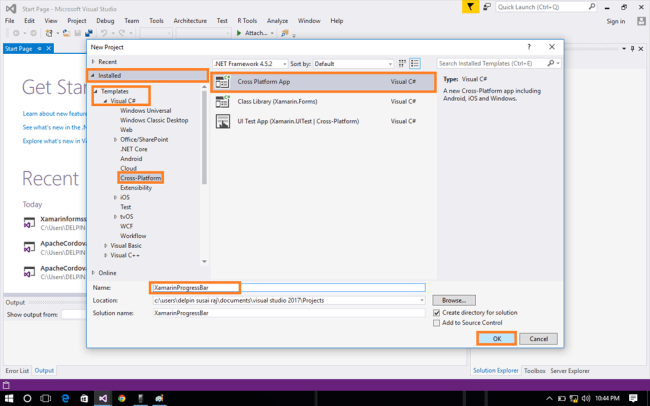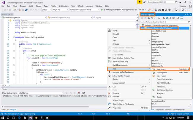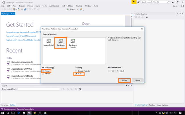 The steps given below are required to be followed in order to create a ProgressBar in Xamarin.Forms, using Visual Studio.