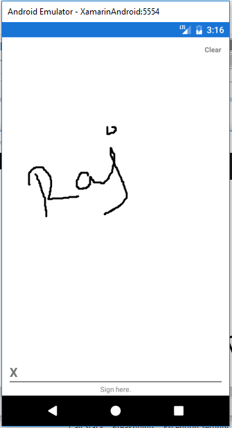 After a few seconds, the app will start running on your Android Emulator or Local machine. You can put a signature in your app. It will work successfully.