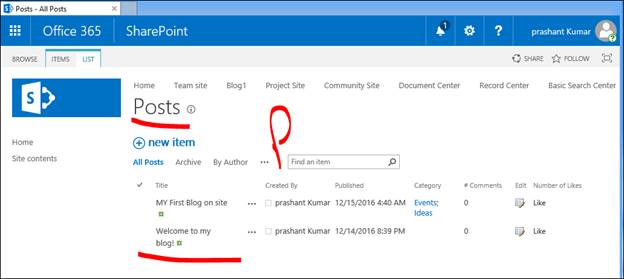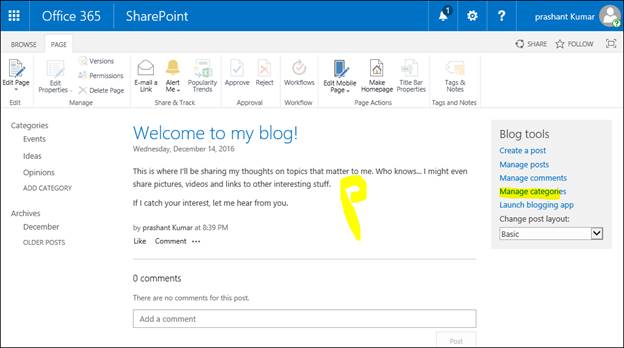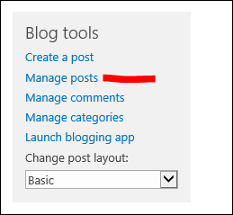 - Select Manage Post from Blog tools option on the SharePoint Blog home page.