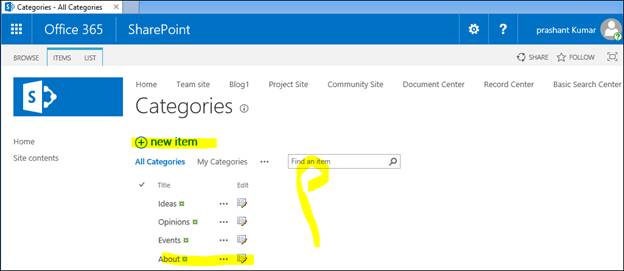 - Click New Items from Categories page and type the name of the category which you want to add. Click Save button.