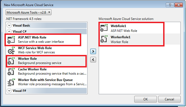 Add Role. After clicking OK, it will ask you to add Role, like Web Role or Worker Role, or both. Here, we are going to choose both.