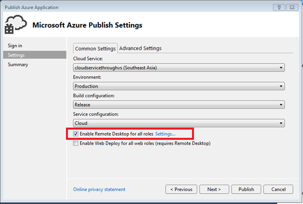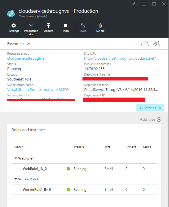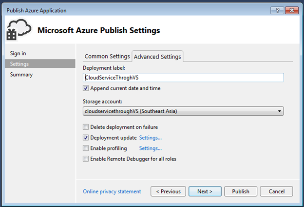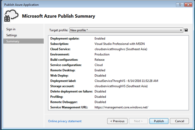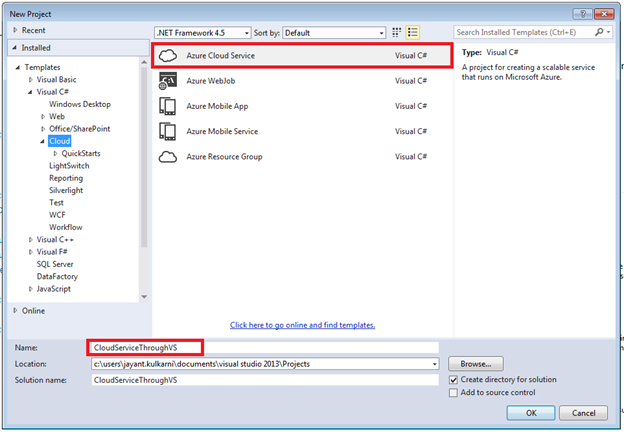 If you already have Cloud Service in your subscription, choose create from dropdown.