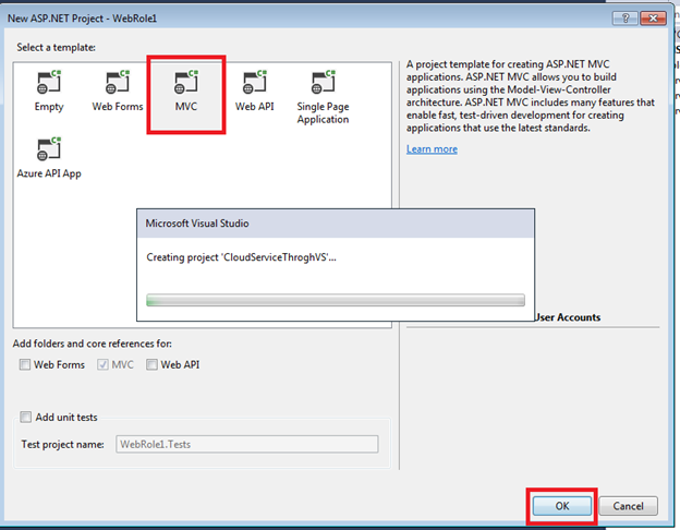 We are going with MVC. Here, I am choosing MVC template and clicking OK.
