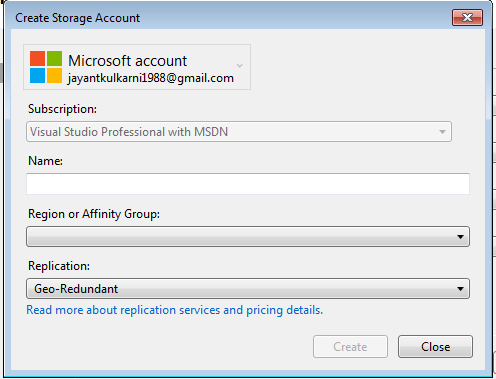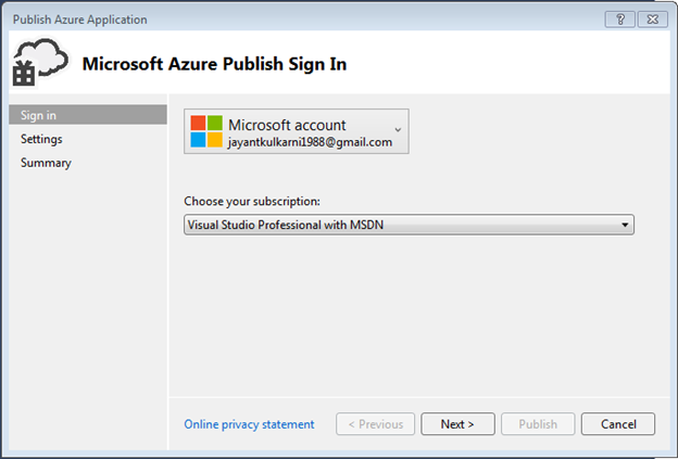 In this, it will ask your Azure Account credentials to get the subscription details.
