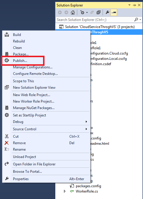 Open Visual Studio, create new project and choose Azure Cloud Service.