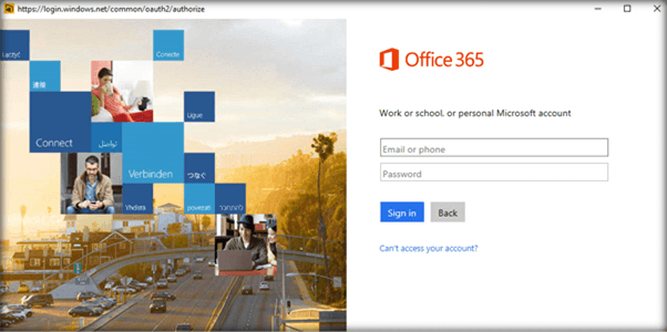 Click on "Sign in" to connect to the SharePoint Online Site.