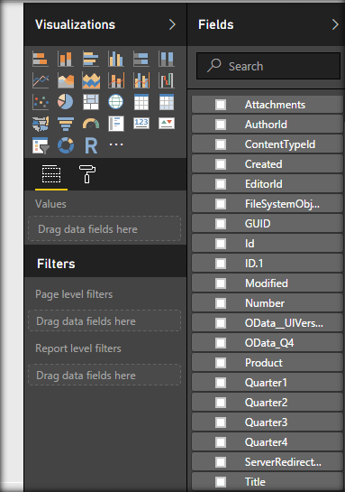 Clicking on "Load" will load the data into Power BI. All the fields that are imported along with the data will be shown in the right pane.