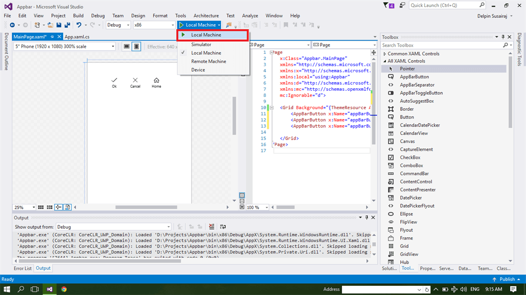 The steps are given below. We can learn how to create CommandBar control in Windows Universal app, using Visual Studio 2015 Update 3.