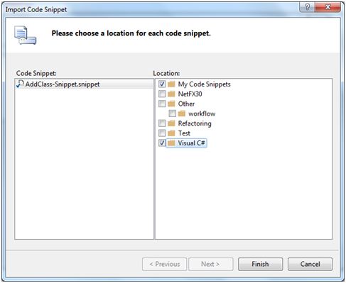 Let’s import into VS 2015 and use it, Open VS 2015 and click on Tools, Code Snippet Manager and click on Import and point to snippet file: