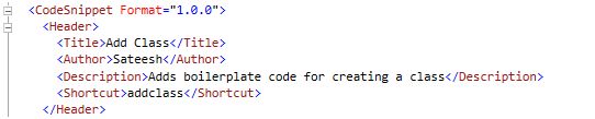 In this article, we will look into steps to be followed for creating and registering a custom code snippet for C# in Visual Studio 2015. Code snippets are helpful for distributing and re-using code. It saves time in writing repetitive code. All we need is to create an XML file with all details for creating a custom code snippet.