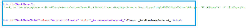 - <div id="WorkPhoneValue" class="ms-srch-ellipsis" title="_#= encodedwphone =#_">Phone: _#= displaywphone =#_ </div>
