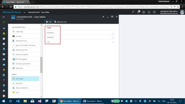 This article will help you to create Easy Tables, using Mobile Apps on Azure and add data towards the table created, using Fiddler.