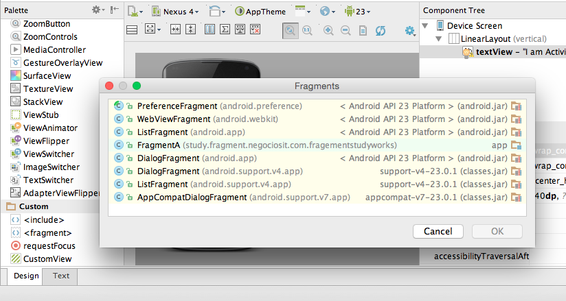 - android:name="study.fragment.negociosit.com.fragementstudyworks.FragmentA"
